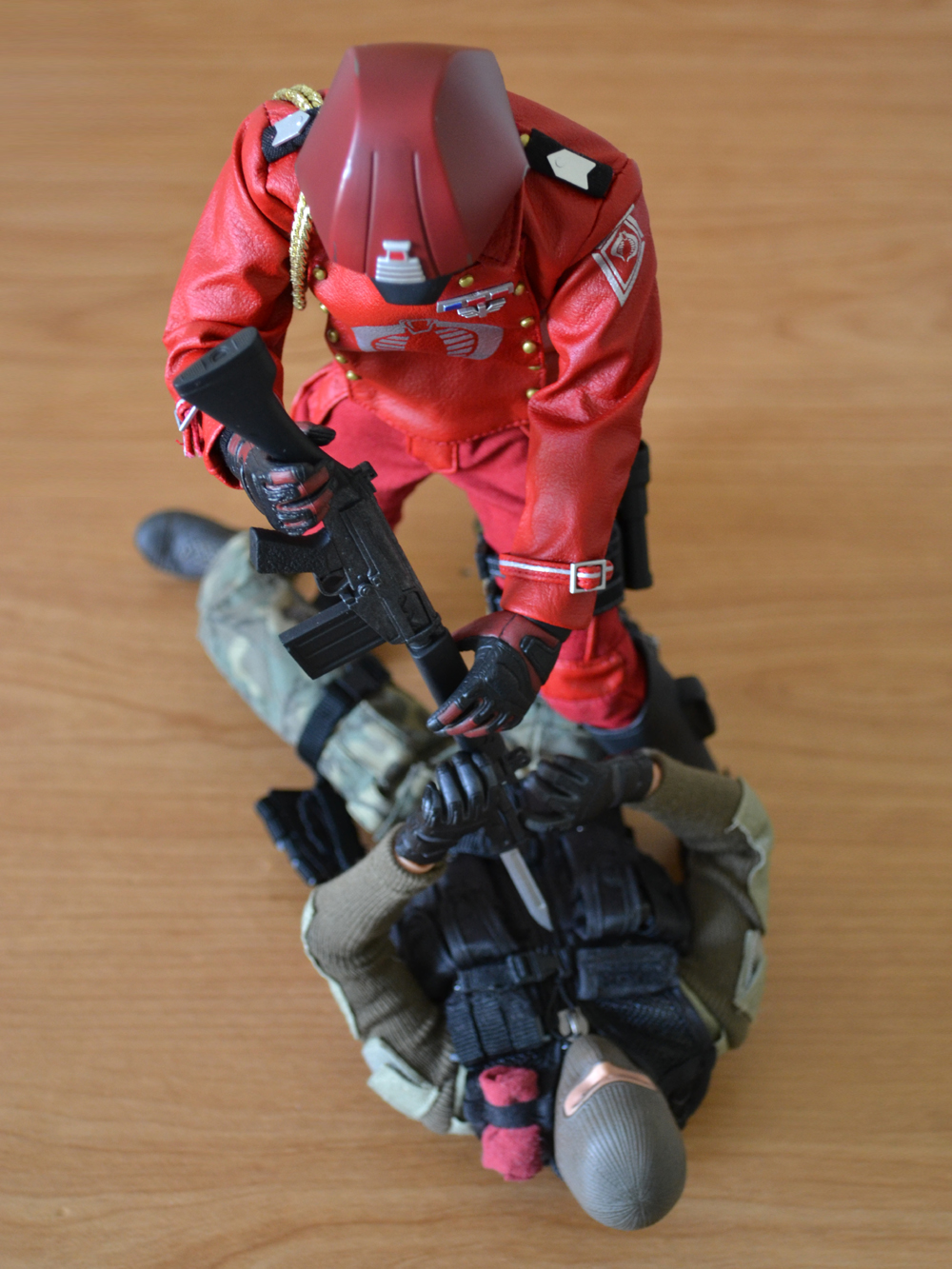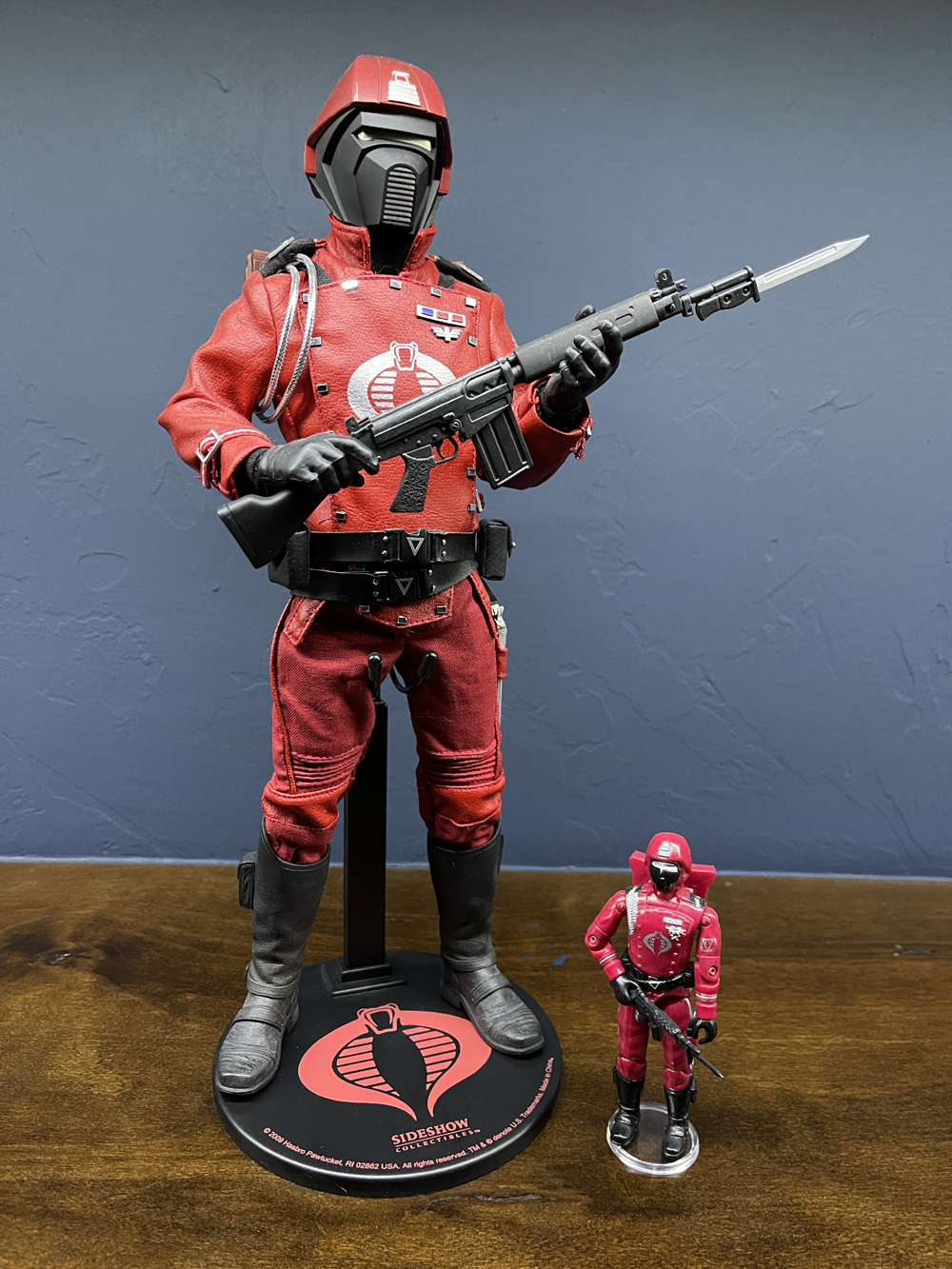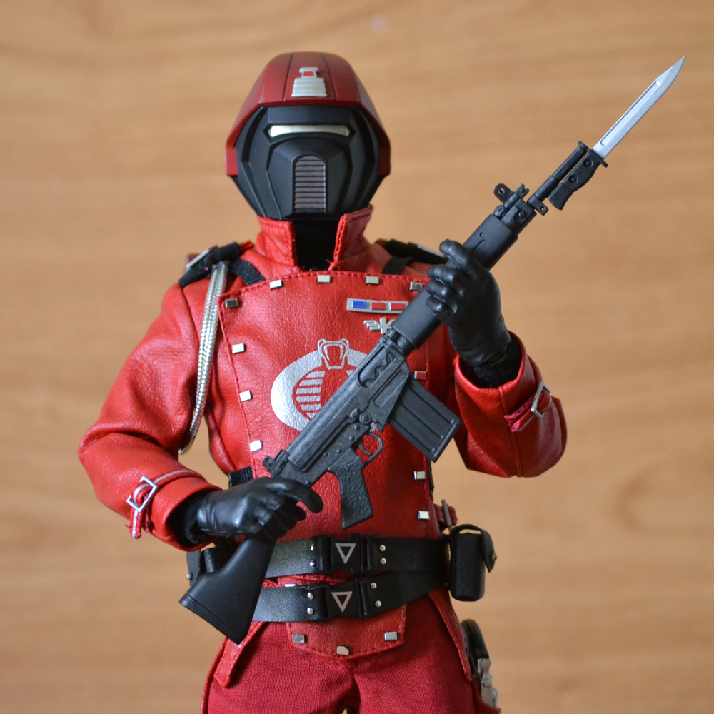 Sideshow's figure is pretty nice. Lots of spot on parts. But again, not exact. Added the dual belts and pouches. Square buttons to the chest flap and added an extra piece to extend the flap down. Swapped to Cobra gloves. Looks spot on now. :)