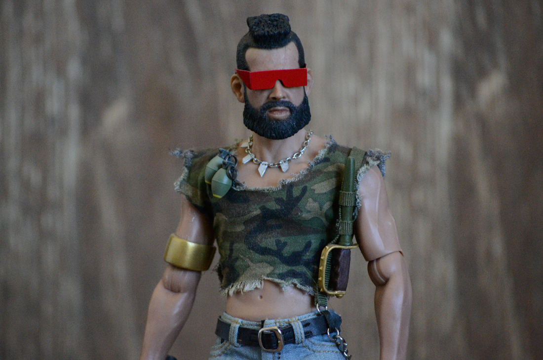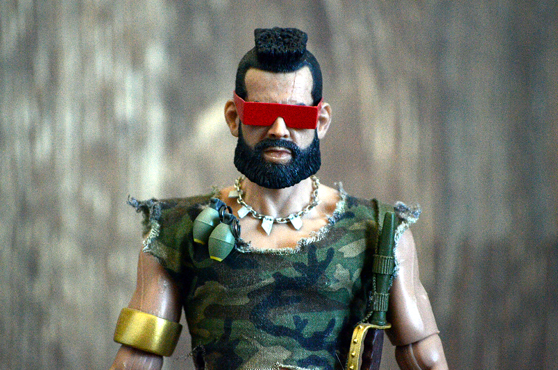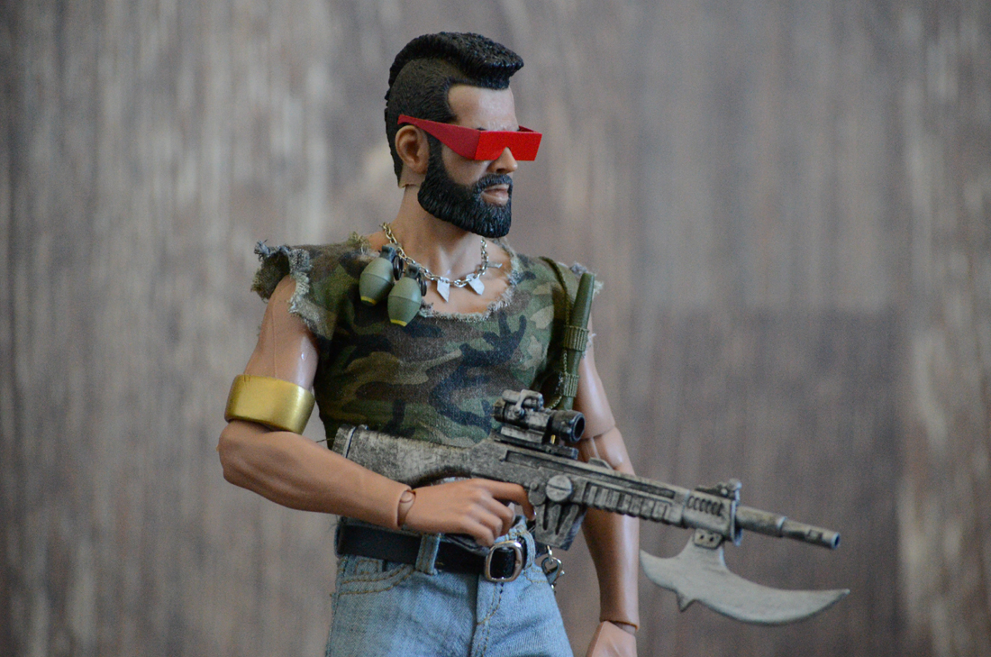 All the original 3 Dreadnoks were in the work for years. Unlike most of the military based characters where a lot of clothes and weapons are available, their accessories and details had to be custom made. Ripper was a fun one to make and used parts from various lines and hand made arm band, necklace and adding the mohawk and puffy beard.