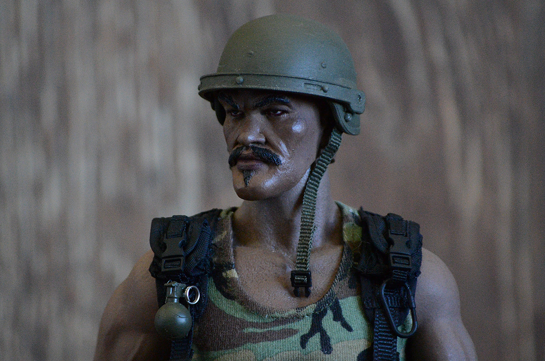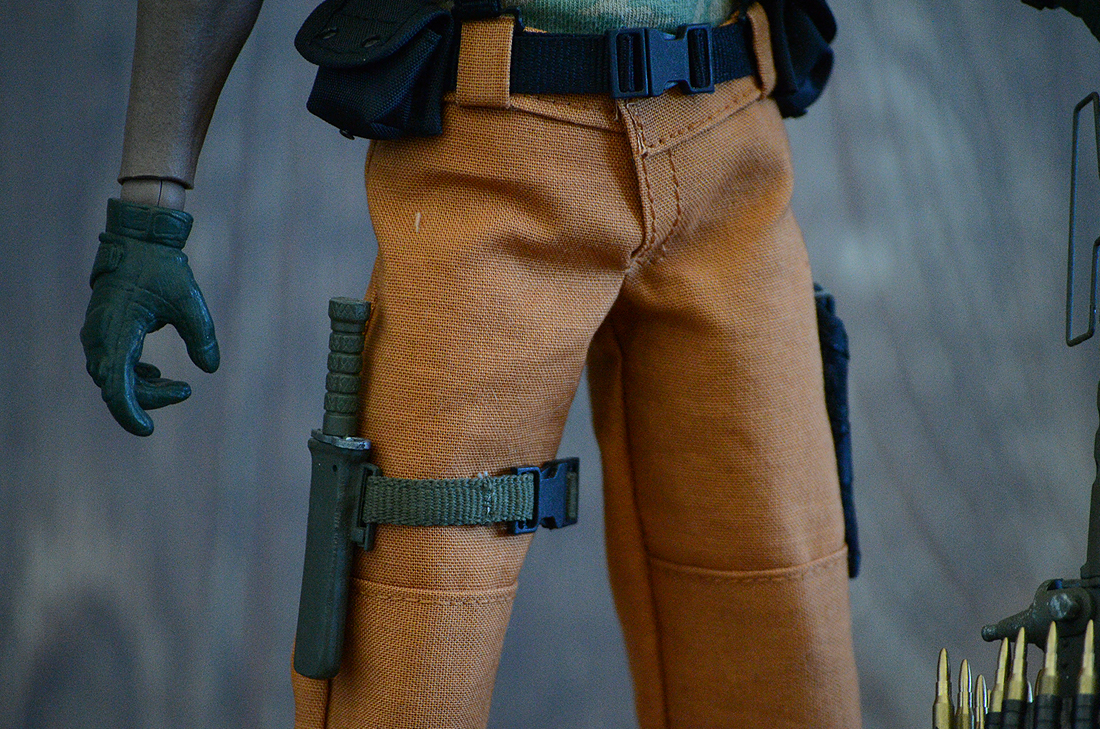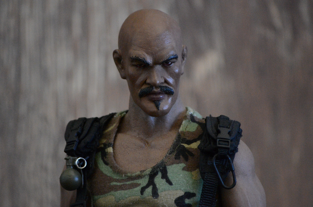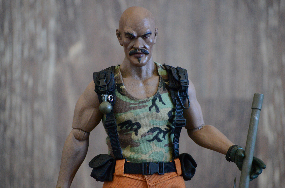 The cook that takes down Cobra time after time while busting out his rhymes! Fan favorite and why not. A custom head sculpt of Evander Holyfield painted by me. Hot Toys body and shirt. Pants and web gear made by me. "Ma Deuce" .50 cal is from Dragon modified with a pistol grip and the barrel was cut down a little bit.