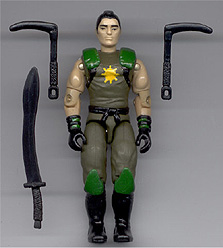 Mantis Ninja Head: Budo 88 Torso: Backblast 93 Arms: Muskrat 88 Waist: Remco figure Thighs: Remco figure Feet: Snake Eyes 94 Sword: Nunchuck 91 Kamas: Ken Masters 93