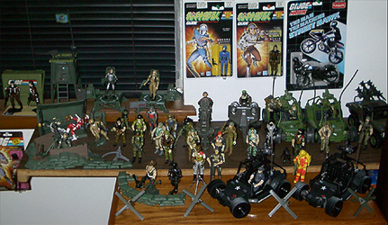 My original GI Joe ARAH Collection 1993-2003. It began with me seeing Headhunter Stormtrooper on the shelves and ended shortly after release of the BAT Internet Exclusive in 2003. It a little over 900 lose GI Joe figures and about 100 carded. Most from the domestic run but several carded foreign figures. Also in there was lots of custom figures and vehicles I made. It also had other offerings like Mego Eagle Force, Micronauts, Battle Star Galactica, Sgt Rock, Universal Monsters and the early Marvel Legends. In 2003 my interest starting going in other directions. I was getting into 1/6 figures and wanting to modify my 2001 Camaro SS. And I sold most of my collection off only keeping a few cherished items. Below are some pictures of the collection. Unfortunately they are small. The original files are long gone and these were uploaded in the days dial up was still a thing. |